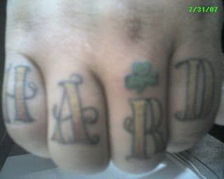 Shamrock Tattoo and 'Hard' Text tattoo design on knuckles
